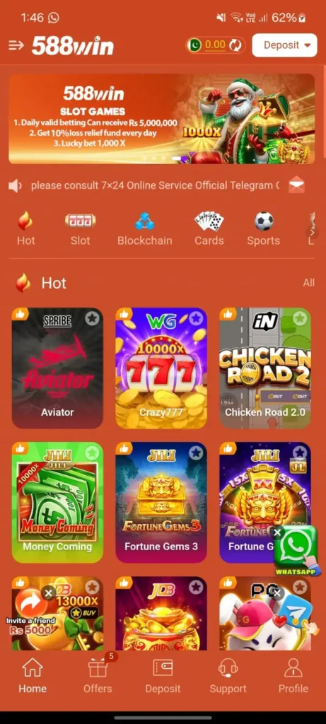 After personally testing 588Win Game APK, I’d describe it as a simple real-money gaming app that performs well on a technical level but still carries noticeable risks. The app runs smoothly, games load quickly, and transactions—especially deposits—are usually fast. Its interface is also easy to understand, which makes it suitable for beginners who are new to this type of platform.