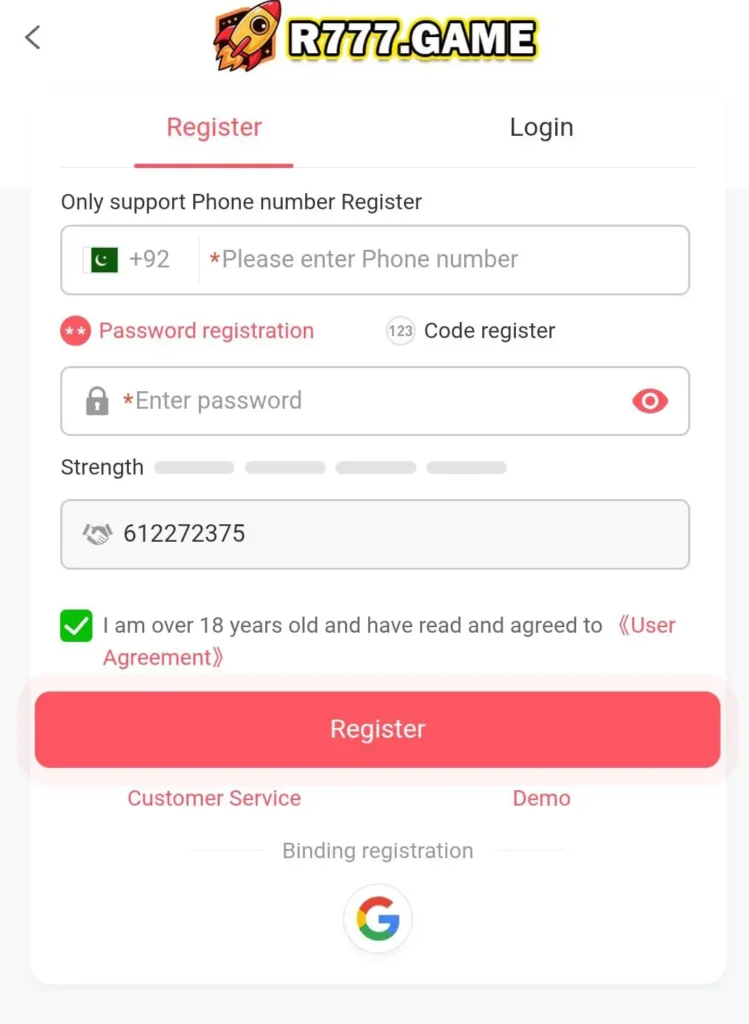 Creating an account on R777 App is simple. Follow these steps: